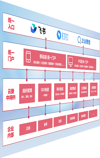 对协作平台提供支持服务,,支持企业应用与协作平台对接,,,包含组织同步、、、、消息集成、、、待办集成等。。。。支持目前主流的协作平台:钉钉、、、、企微和飞书。。。